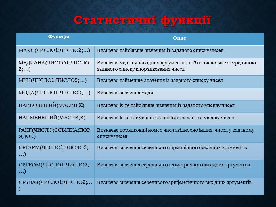 Розробки презентацій з інформатики 11 клас по темі: "Системи опрацювання табличних даних"